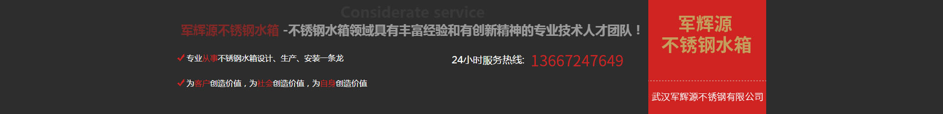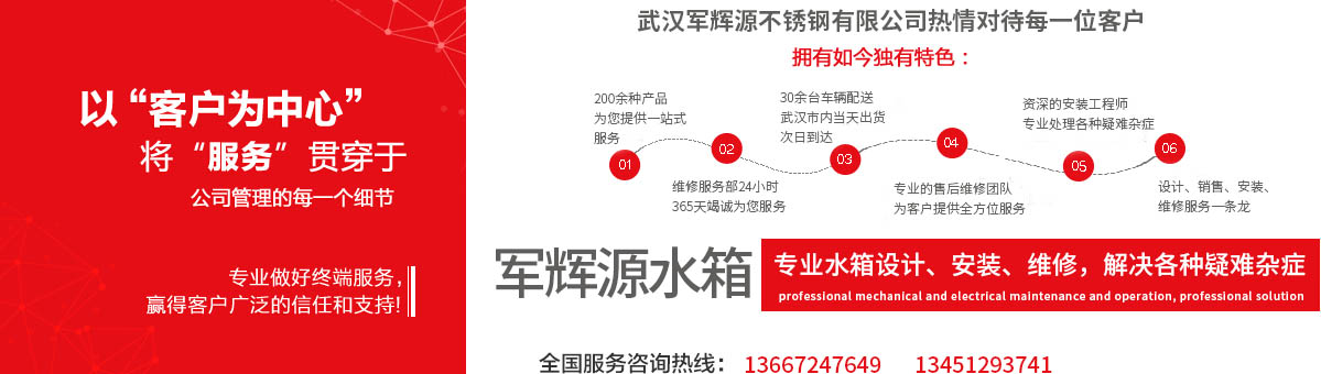 武漢軍輝源不銹鋼有限公司是華中地區專業生產不銹鋼水箱的環(huán)保企業,公司集不銹鋼水箱開發(fā)設計、生產、銷售、維修、售后服務為一體。